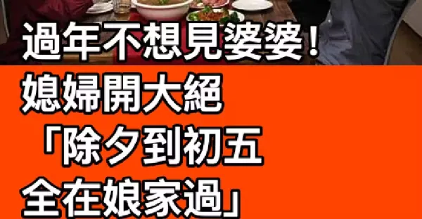 過年不想見婆婆!媳婦開大絕「除夕到初五全在娘家過」 機智出招「網友大讚太聰明」:真的有用