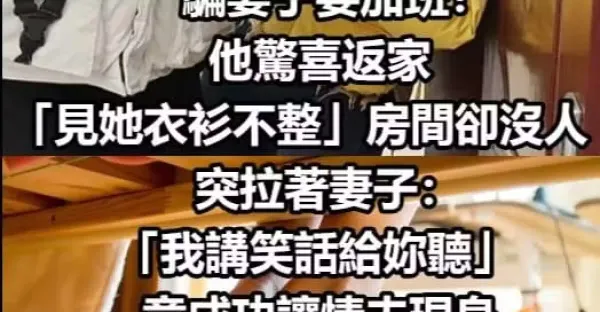 騙妻子要加班!他驚喜返家「見她衣衫不整」房間卻沒人 突拉著妻子:「我講笑話給妳聽」竟成功讓情夫現身!