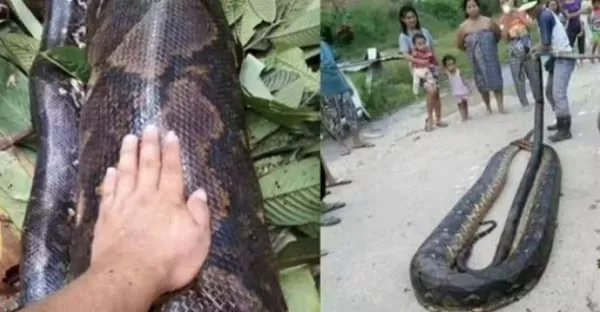 可憐,6公尺超巨母蛇叫太大聲,藏樹洞辦事被發現,最後慘被村民拖出來做全蛇料裡!