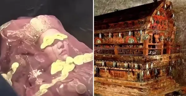 日本人用相機記錄內蒙古挖出千年契丹公主古墓,當墓主11層外衣被撤時有人大喊危險