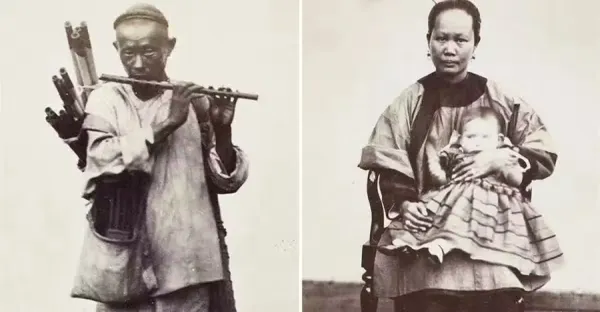 英國人用相機記錄大清咸豐皇帝統治下的百姓形象:給洋人看小孩的保姆,賣笛子的商販