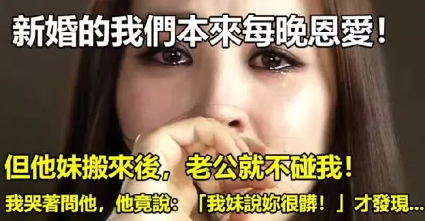 新婚的我們本來每晚恩愛!但他妹搬來後,老公就不碰我了!我哭著問他,他竟說:「我妹說妳很髒!」才發現