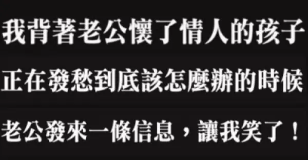 我背著老公懷了情人的孩子, 正在煩惱時,老公傳來一則訊息,讓我笑了