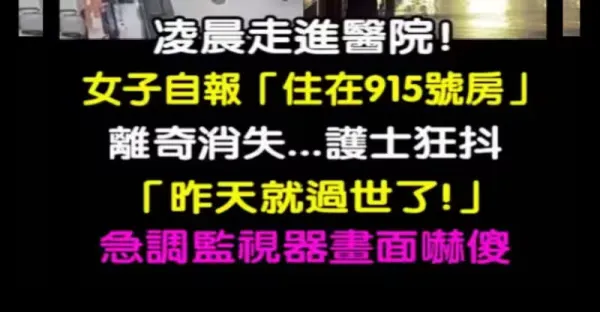 凌晨走進醫院!女子自報「住915號房」離奇消失,護士狂抖「昨天就過世了」急調監視器畫面嚇傻…