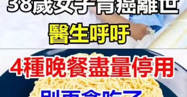 38歲女子胃癌離世,醫生呼籲4種晚餐儘量停用, 別再貪吃了!