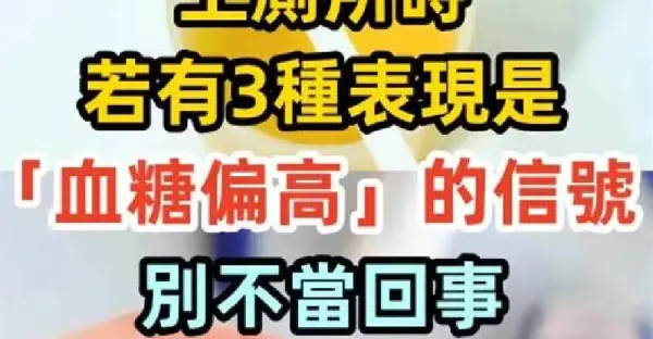 上廁所時,若有3種表現是「血糖偏高」的信號 別不當回事「嚴重會糖尿病」