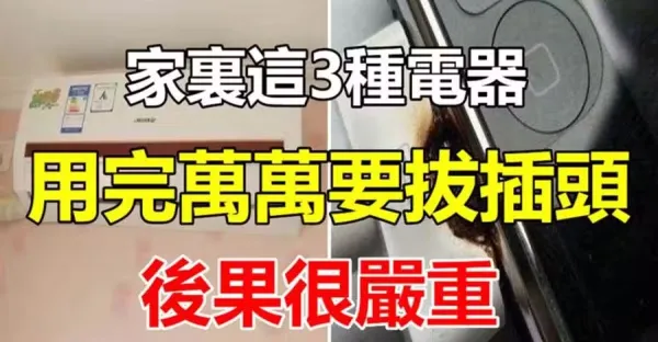 家裡3種電器,用完萬萬要拔插頭,不要拿生命開玩笑,每月還省不少電費…