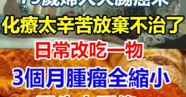 79歲婦人大腸癌末!化療太辛苦「放棄不治了」日常改吃一物「3個月腫瘤全縮小」醫生也看傻!