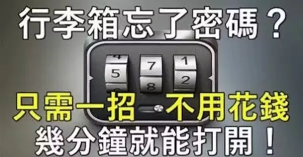 行李箱忘了密碼鎖的密碼!教你一招,不用花錢請開鎖師父,幾分鐘就能打開!