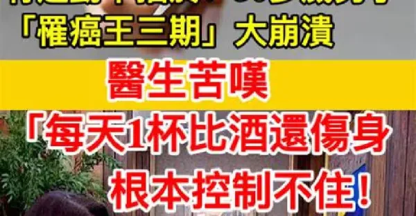 有運動不抽煙!50多歲男子「罹癌王三期」, 大崩潰 醫生苦嘆「每天1杯比酒還傷身」:根本控制不住