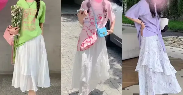 T恤+半裙=夏天的王炸組合,微胖女生換著穿,時髦一整個夏天