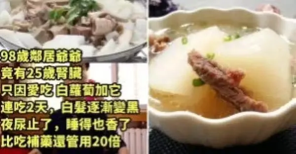 98歲鄰居爺爺,竟有25歲腎臟,只因愛吃 白蘿蔔加它,連吃2天,白髮逐漸變黑,夜尿止了,睡得 也香了,比吃補藥還管用20倍.
