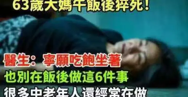 63歲大媽午飯後猝死!醫生:寧願吃飽坐著,也別在飯後做這6件事!