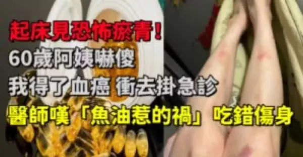 起床見恐怖瘀青!60歲阿姨嚇傻「我得了血癌」衝去掛急診, 醫師嘆「魚油惹的禍」吃錯傷身!