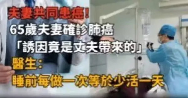 夫妻共同患癌!65歲夫妻確診肺癌「誘因竟是丈夫帶來的」, 醫生提醒:睡前每做一次等於少活一天!