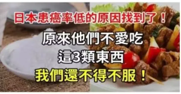 日本患癌率低的原因找到了!原來他們不愛吃「這3類東西」我們不得不服~