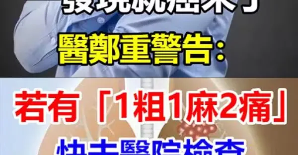 一發現就癌末了!醫鄭重警告:若有「1粗1麻2痛」快去醫院檢查!