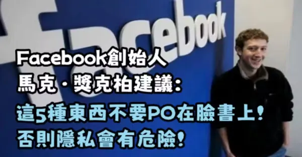 Facebook創始人馬克·獎克柏建議:這5種東西不要PO在臉書上,否則隱私會有危險!