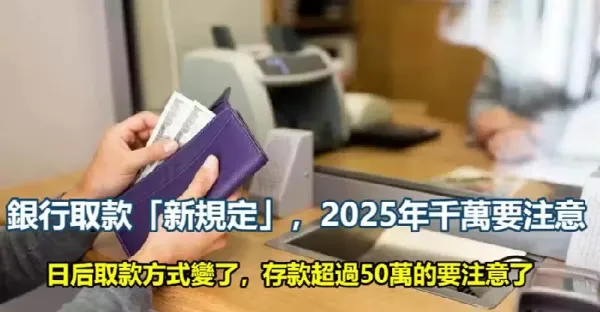 銀行取款「新規定」出爐!今年務必留意,取款方式將有變化,存款超過50萬的更要特別注意