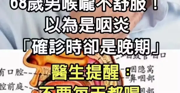 68歲男喉嚨不舒服!以為是咽炎「確診時卻是晚期」 醫生提醒:不要每天都喝「這種飲料了」~