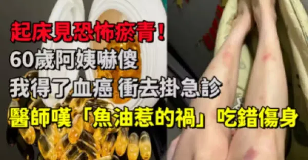起床見恐怖瘀青!60歲阿姨嚇傻「我得了血癌」衝去掛急診, 醫師嘆「魚油惹的禍」吃錯傷身