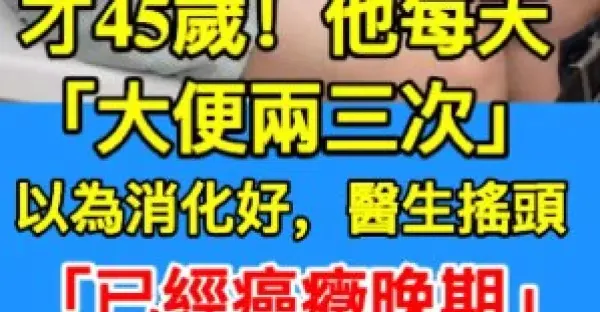 才45歲!他每天「大便兩三次」以為消化好,醫生搖頭「已經癌症晚期」,4異常沒注意!