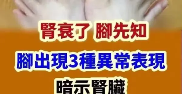 腎衰了,腳先知!腳如出現3種異常表現,暗示腎臟快要「撐」不住了