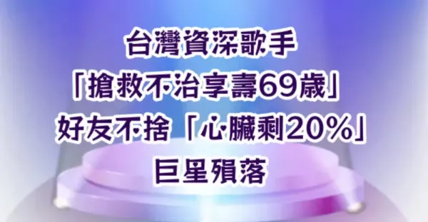 台灣資深歌手「搶救不治享壽69歲」 好友不舍「心臟剩20%...」巨星殞落