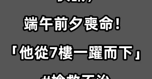 快訊/ 端午前夕喪命! 「他從7樓一躍而下」 #搶救不治