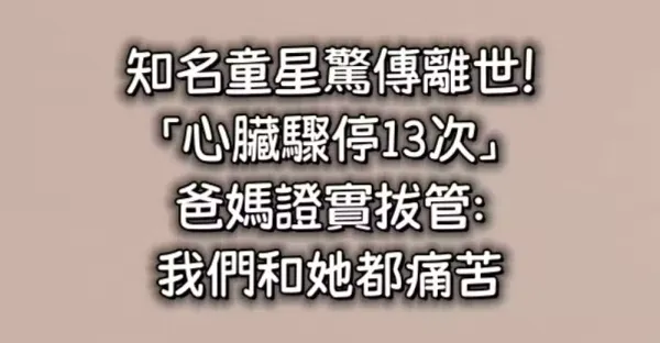 快訊/知名童星驚傳離世!「心臟驟停13次」爸媽證實拔管:我們和她都痛苦