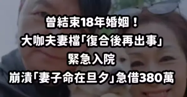 曾結束18年婚姻!大咖夫妻檔「復合後再出事」緊急入院 崩潰「妻子命在旦夕」:急借380萬