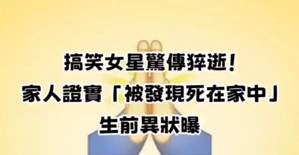 搞笑女星驚傳猝逝!家人證實「被發現死在家中」生前異狀曝!