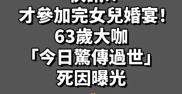 快訊/才參加完女兒婚宴!63歲大咖「今日驚傳過世」死因曝光!