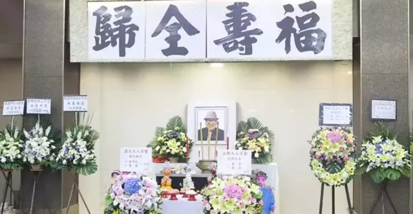 102歲香港知名老戲骨舉辦喪禮,遺照和藹可親,鄭少秋官晶華送花牌