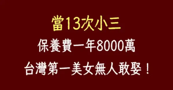 當13次小三,保養費一年8000萬,台灣第一美女無人敢娶!