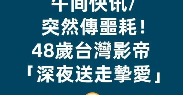 午間快訊/突然傳噩耗!48歲台灣影帝「深夜送走摯愛!」