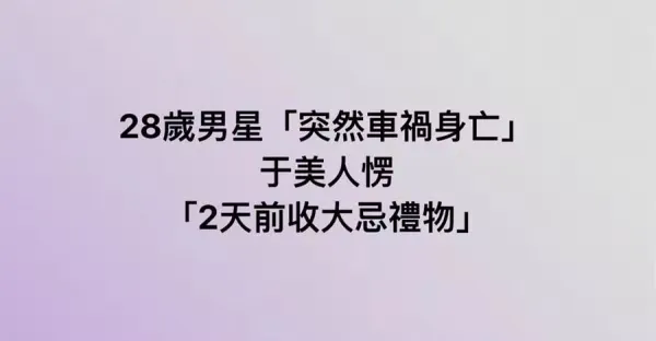 28歲男星「突然交通事故身亡」...于美人愣「2天前收大忌禮物!」