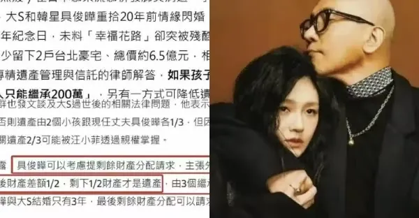 台媒:大S已火化留下6.5億遺產,疑似分成三份,孩子可能分200萬