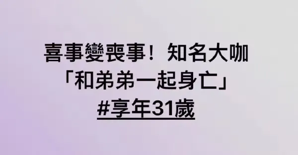 喜事變喪事!知名大咖「和弟弟一起身亡」#享年31歲