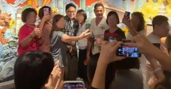 TVB不老男神內地被偶遇!被中年女性圍堵,合照時各種親密動作