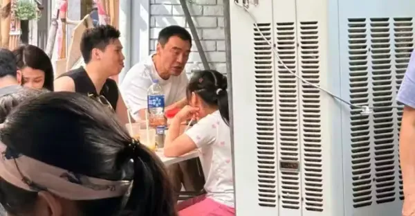 71歲鍾鎮濤吃飯被偶遇,滿頭黑髮精神抖擻不像年邁七旬老人,坐牆角用餐接地氣
