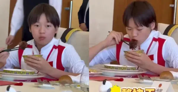 笑噴!全紅嬋坐領導中間大口炫牛扒,領導慢慢切肉小紅拿筷子整塊干