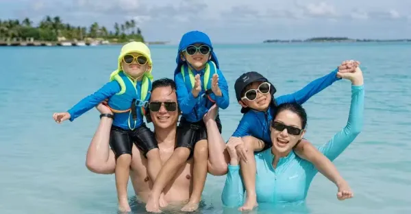 胡杏兒全家出遊,老母親騎車帶三娃,李乘德肩扛老婆抱兒子帥翻了