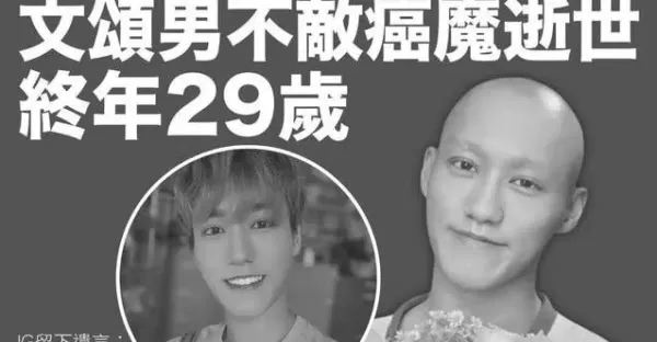 TVB29歲男星文頌男去世!生前曾積極抗癌,去世前3天寫下告別文