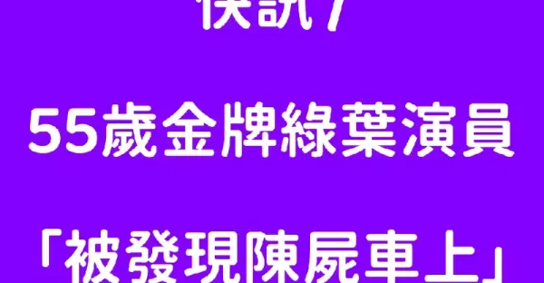 快訊/55歲金牌綠葉演員「被發現陳屍車上」!