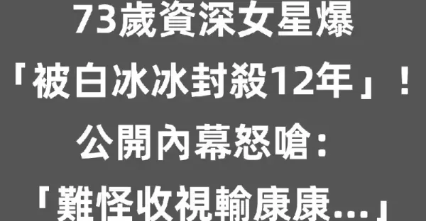 73歲資深女星爆「被白冰冰封殺12年」! 公開內幕怒嗆:「難怪收視輸康康...」