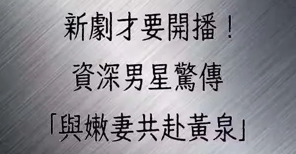新劇才要開播!資深男星驚傳「與嫩妻共赴黃泉!」