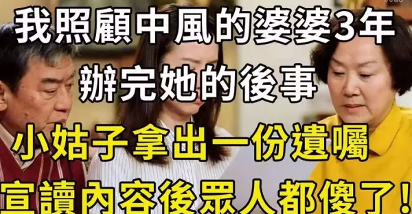 我照顧中風的婆婆3年,辦完她的後事,小姑子拿出一份遺囑,所有人都傻眼了