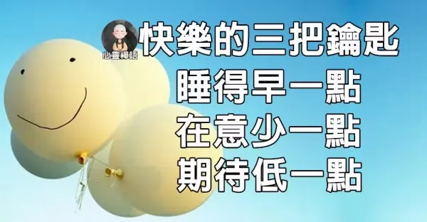 快樂的3把鑰匙:睡得早一點、在意少一點、期待低一點