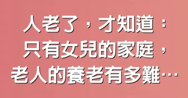 人老了,才知道:只有女兒的家庭,老人的養老有多難…